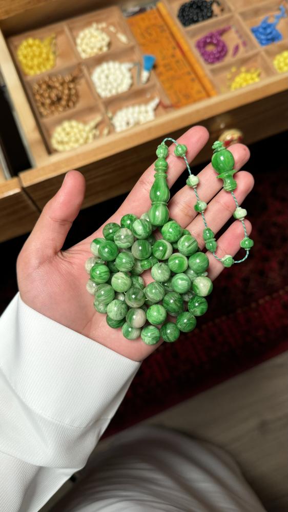فاتوران صب جديد خراطة : ورشة الواحي اللون : اخضر محاحي مقاس الخرز : 11.6 ملي عدد الخرز : 55 خرزه بطقم : تملكة محزز
