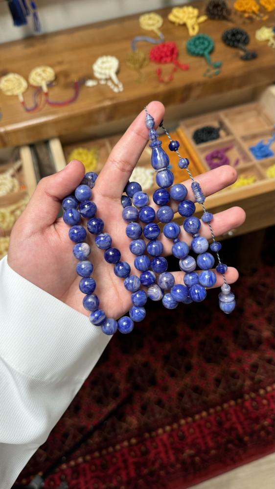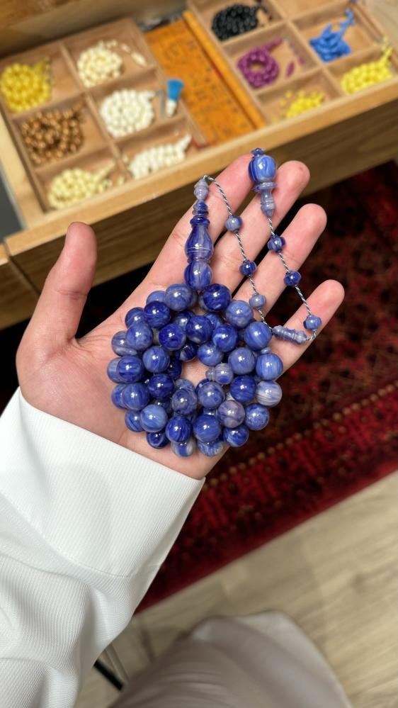 فاتوران صب جديد خراطة : ورشة الواحي اللون : ازرق بتعريق ابيض مقاس الخرز : 11.4 ملي عدد الخرز : 55 خرزه بطقم : تملكية محزز
